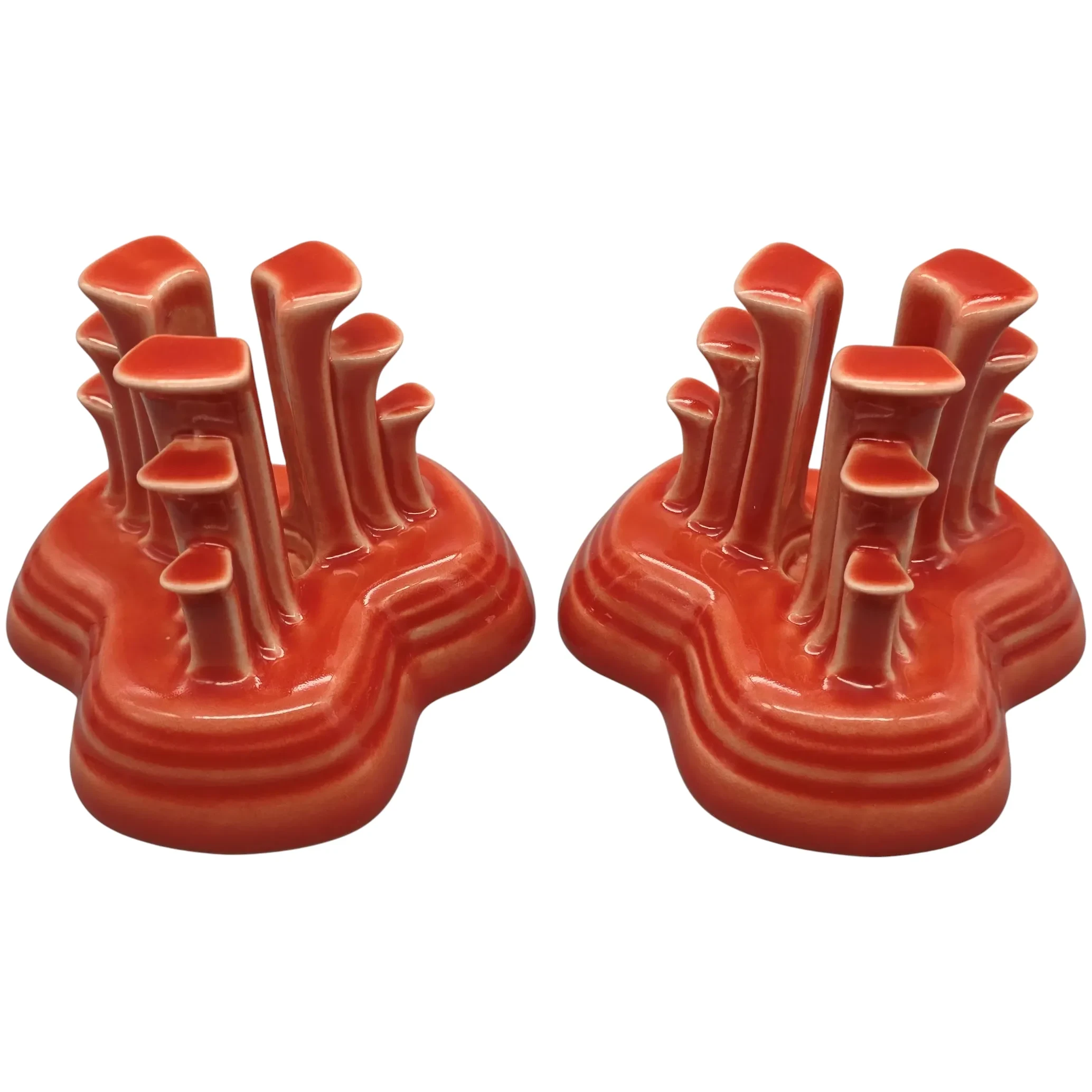 Pair Fiesta Persimmon Pyramid Candle Holders